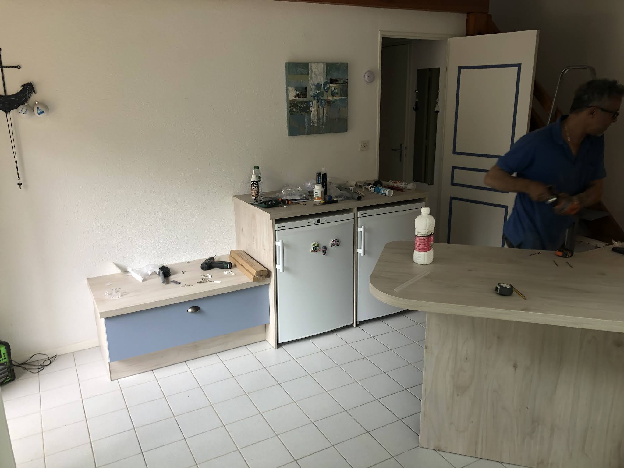 Projet très bien conçu par Julien, pas évident en raison de la place limitée. Montage impeccable par le poseur Jean. Ajustement des meubles et jointage parfait ! Seul gros bémol : la livraison incomplète ! Il manquait les deux pièces Liehber qui étaient restées à l’entrepôt. Pourtant cochées sur le bon de livraison ! Appel à Christophe, le boss de colomiers en urgence. Celui-ci prend les choses en main, et on retrouve la trace des deux éléments. Le poseur devant passer le lendemain, et l’entrepôt n’étant pas très coopérant, je me vois dans l’obligation de venir chercher moi-même les éléments. Qui rentrent de justesse dans la Q3 !!! Pas très professionnel de la part du livreur bordelais … Le seul souci qu’il y a eu dans ce projet, je précise. Les équipes se sont mis en 4 pour régler ce problème ! Et le résultat : un grand bonheur d’avoir une pièce fonctionnelle où il fait bon vivre ! Merci jean, Julien et Christophe, rendez-vous au prochain projet !