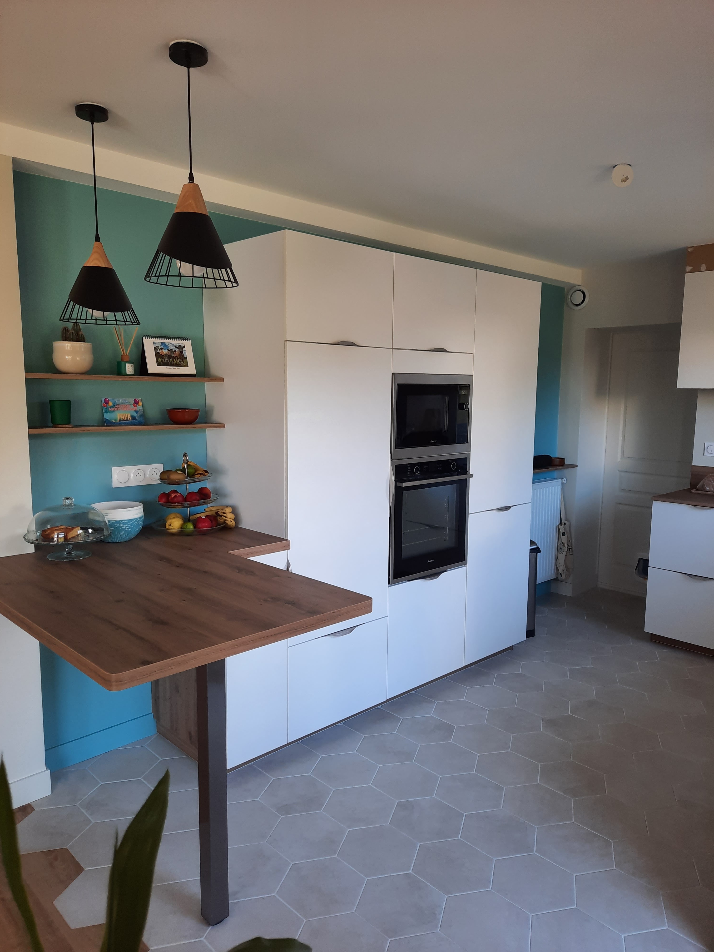 Un grand merci Camille M. pour vos conseils, disponibilités et suivis pendant toutes les phases du projet. Vous avez fait preuve d'écoute, de propositions et le résultat nous satisfait grandement. Félicitation au poseur qui a su s'adapter et trouver des solutions qui font que cet espace est devenu est bel endroit, où la famille aime se réunir. Super travail à toute l'équipe Mobalpa Sylvie et Gilles