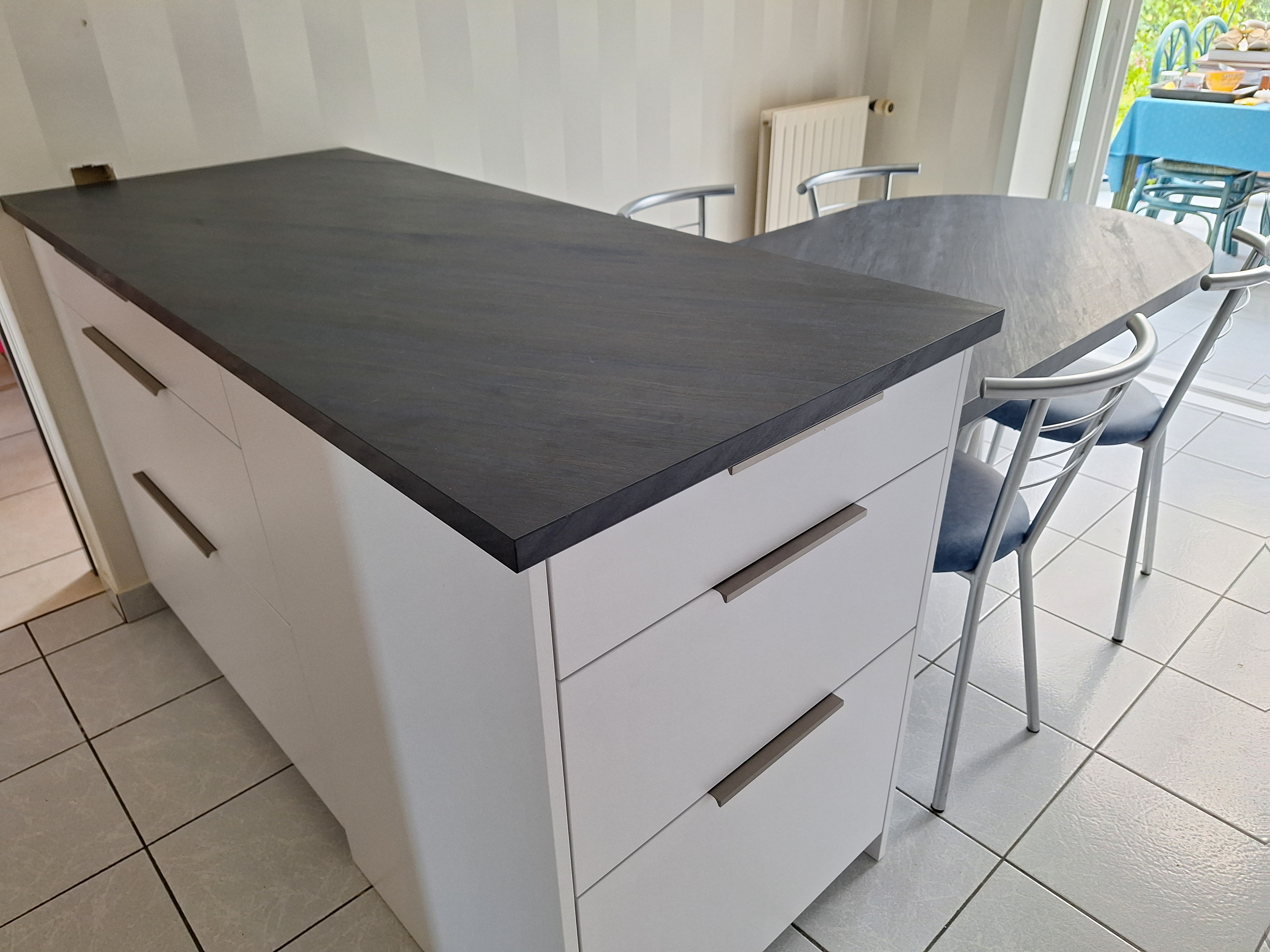 Merci pour les conseils et le suivi dans l'installation à Pierre Gilles et pour la pause à Michel Un seul bémol peut-être : la longueur du chantier ... Tres grande satisfaction au final tant pour la cuisine (et la verrière : idée de P G ...) que pour la salle d'eau.